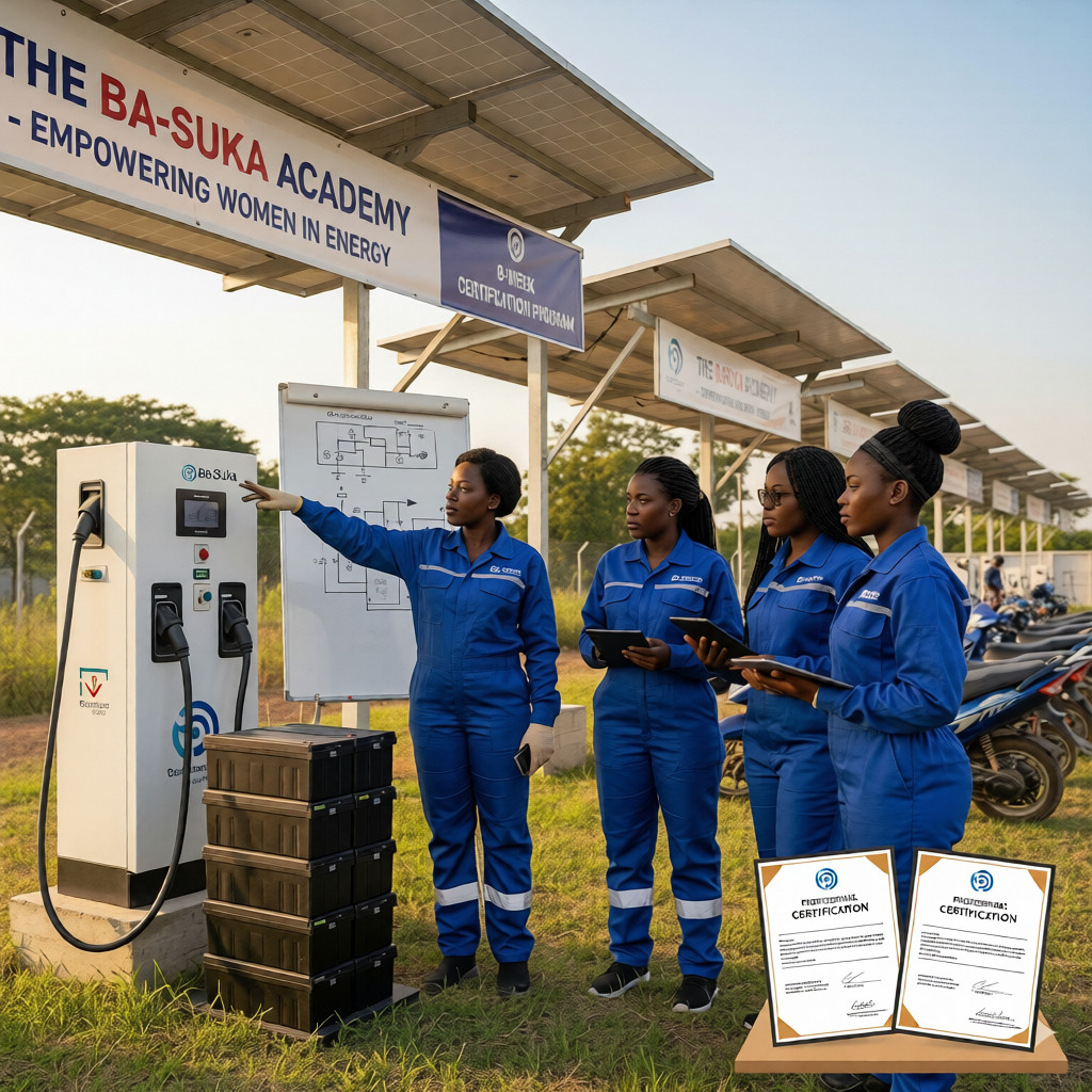 Ba-Suka Energy deliver’s instant, sustainable power for mobility, businesses, and backup — using 100% solar-powered Swap & Glow™ stations operated by professional women